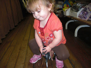 Then once in the gift shop Ember saw a little horse. She thought it would be a good idea to sit on it (and no this was not prompted by mommy or daddy). Luckily we had camera already in hand.